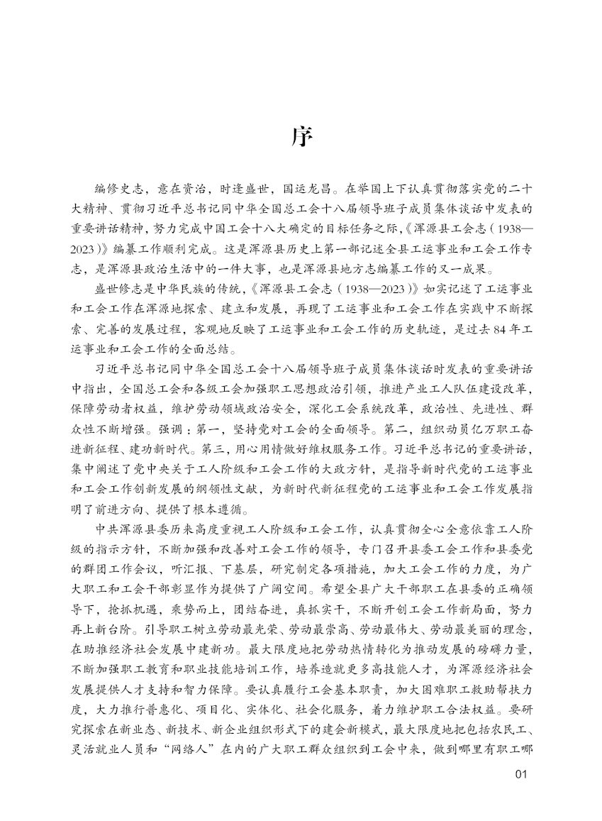 本志書以馬克思列寧主義、毛澤東思想、鄧小平理論、“三個代表”重要思想、科學發(fā)展觀、習近平新時代中國特色社會主義思想為指導,以《中華人民共和國工會法》《中國工會章程》為準則,堅持辯證唯物主義和歷史唯物主義的立場,力求完整地、準確地、客觀地再現(xiàn)渾源縣工運事業(yè)及各級工會建立、完善、整頓和發(fā)展過程的真實面貌和全縣各級工會做出的卓有成就,做到科學性、思想性、資料性的統(tǒng)一。