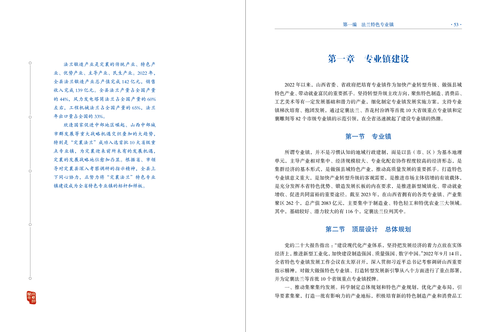奮進(jìn)新征程,建功新時(shí)代。面對(duì)時(shí)代的召喚、群眾的期許,定襄縣全面貫徹落實(shí)黨的二十大精神,堅(jiān)持“發(fā)展是硬道理、業(yè)績(jī)是新?lián)?dāng)、交賬是軍令狀”的工作理念,秉持“負(fù)責(zé)任、動(dòng)腦筋、講良心”的工作要求,完整、準(zhǔn)確、全面地貫徹黨中央制訂的新發(fā)展理念,努力構(gòu)建新發(fā)展格局,持續(xù)推進(jìn)高質(zhì)量發(fā)展,大力提振市場(chǎng)信心,把法蘭、文化與產(chǎn)業(yè)進(jìn)行深度融合,在提品質(zhì)、延鏈條、聚集群、強(qiáng)支撐、創(chuàng)品牌上精準(zhǔn)發(fā)力,推動(dòng)專業(yè)鎮(zhèn)培育工作提質(zhì)增效、縱深發(fā)展。以建設(shè)“定襄法蘭”特色專業(yè)鎮(zhèn)為牽引,著力打造產(chǎn)業(yè)集聚度高、專業(yè)化分工協(xié)作程度高、產(chǎn)業(yè)輻射帶動(dòng)能力強(qiáng)、品牌優(yōu)勢(shì)突出、就業(yè)富民效應(yīng)明顯的特色專業(yè)鎮(zhèn),實(shí)現(xiàn)“一鎮(zhèn)帶一方、一方促全盤(pán)”的鏈條式集群發(fā)展。以苦干實(shí)干的精神拼出事業(yè)的新高度,打開(kāi)發(fā)展的新局面,加快譜寫(xiě)定襄現(xiàn)代化建設(shè)新篇章。