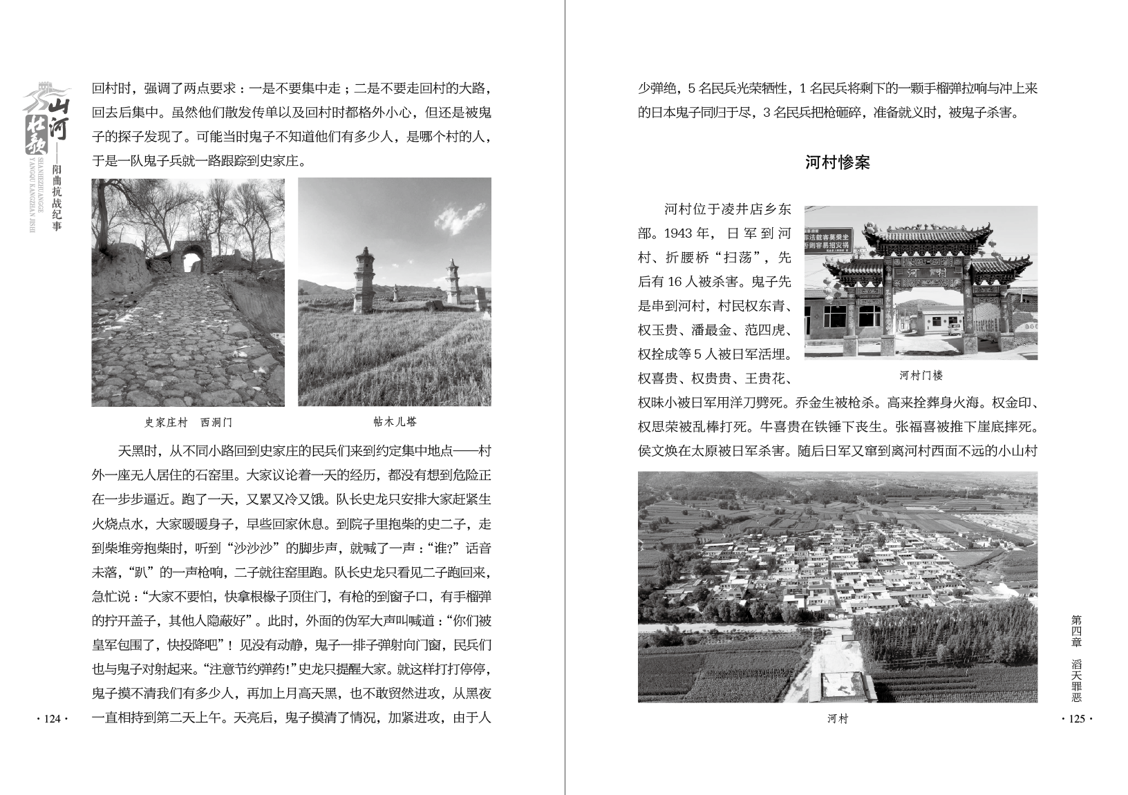 在奔涌的歷史長(zhǎng)河中,精神的力量從未褪色?!渡胶訅迅琛芬粫?shū),在大量調(diào)研、核實(shí)、精心編輯的基礎(chǔ)上,借鑒、參考、吸納、采用了此前我縣相關(guān)部門(mén)編輯印發(fā)的陽(yáng)曲抗戰(zhàn)史料以及太原、古交、盂縣、壽陽(yáng)、交城、興縣等地的有關(guān)陽(yáng)曲抗日戰(zhàn)爭(zhēng)史料和部分老戰(zhàn)士的回憶錄、影像資料。這些翔實(shí)珍貴的史料為我們清晰重現(xiàn)了80年前陽(yáng)曲軍民同仇敵愾、前赴后繼、英勇斗爭(zhēng)、不屈不撓抗擊日寇入侵直至完全勝利的艱苦卓絕、宏偉壯烈的全景畫(huà)面,是陽(yáng)曲縣第一部全面性、整體性、紀(jì)實(shí)性抗日戰(zhàn)爭(zhēng)歷史文獻(xiàn)。